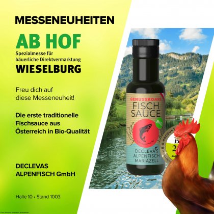 Wir präsentieren stolz unsere Bio-Fischsauce, die erste traditionelle Fischsauce aus Österreich in Bio-Qualität. Mit Zero-Waste-Gedanken und Regionalität bieten wir sie in reinster Form an. Durch die aufregende Zusammenarbeit von Decleva's Alpenfisch Mariazell und Genusskoarl wurde ein kulinarisches Highlight erreicht! Unsere Bio-Fischsauce ist "Natur pur" - hergestellt aus besten Bio-Forellen und -Saiblingen sowie unjodiertem Salz aus dem Salzkammergut. Die Bio-Fischzucht von DECLEVA'S Alpenfisch liegt im unberührten Mariazeller Bergland, während Genusskoarl in seinem Bio-Start-Up in Wolkersdorf Brauerei in 8. Generation ist. Unsere Bio-Fischsauce, gekürt als "Bio-Produkt des Jahres 2024", punktet mit ihrem intensiv salzig-würzigen Umami-Geschmack und einer Note von frischen Forellen. Perfekt zum Würzen regionaler Gerichte und fernöstlicher Spezialitäten.
