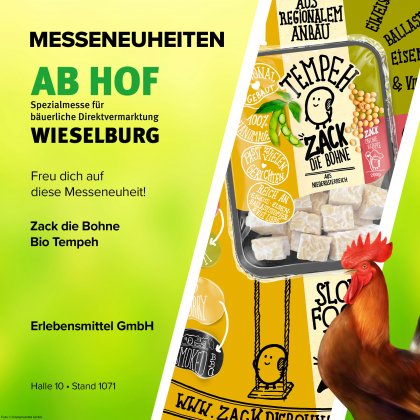 Zack die Bohne Bio Tempeh ist das Ergebnis eines einzigarten Zusammenspiels aus fermentierten Sojabohnen, Apfelessig und speziellen Starterkulturen. Der Gründer Hannes Weichhart produziert in der eigens dafür errichteten Lebensmittelproduktion am ehemaligen Bauernhof der Familie in St. Pölten. Der in Handarbeit und in Zusammenspiel mit hochwertigen biologischen Rohstoffen produzierte Tempeh ist in 4 großartigen Geschmacksrichtungen erhältlich. Durch den hohen Anteil an Bohnen ist Tempeh eine sehr gute Eiweißquelle, außerdem lässt er sich wunderbar mit vielen tollen Gerichten aus unserer Küche kombinieren. Das angenehme Mundgefühl und der aromatische Eigengeschmack überzeugen beim ersten Biss.