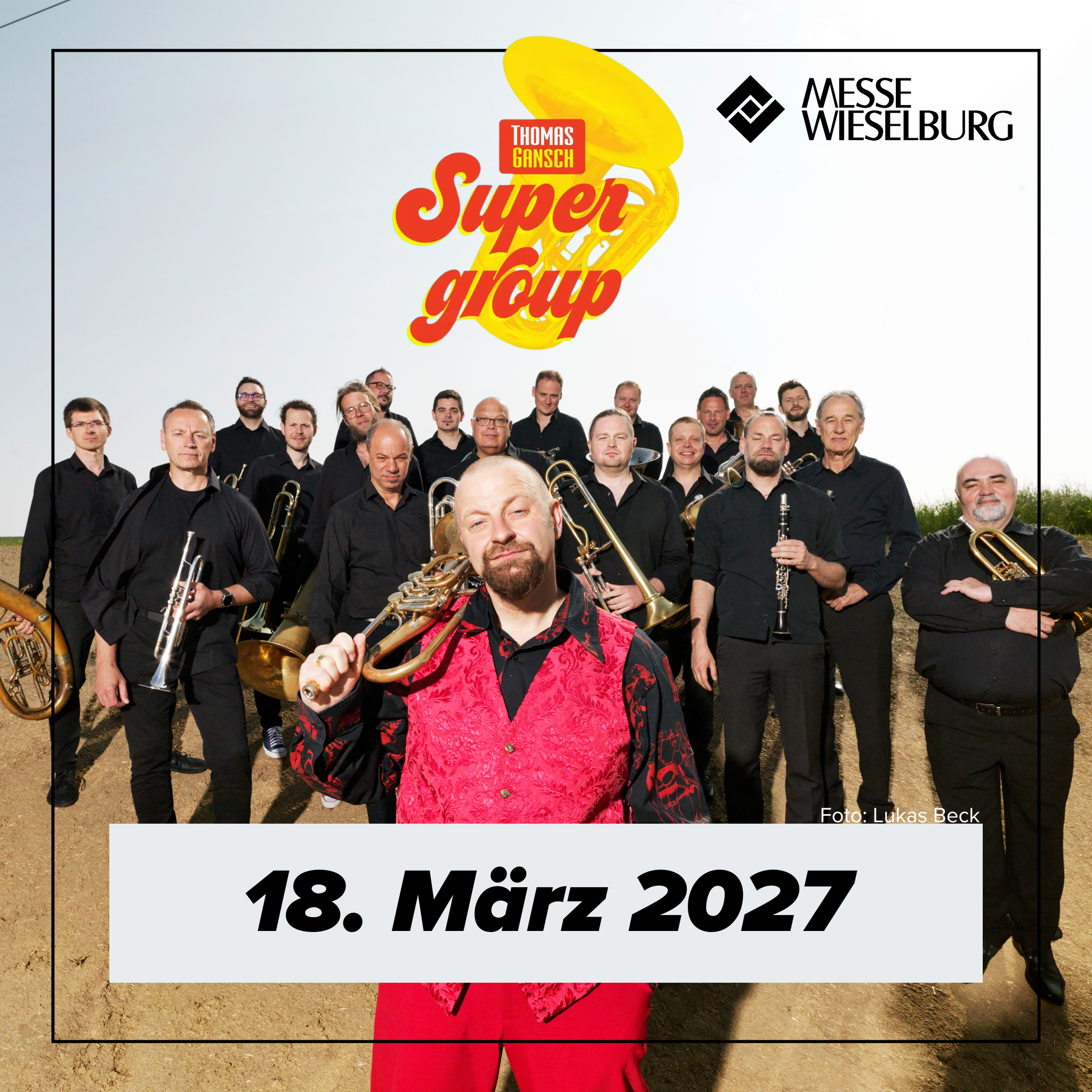 Die Blasmusik-Supergroup rund um Thomas Gansch kommt 2025 mit ihrem neuen Show-Programm The Sound of Blasmusik nach Wieselburg. Mit 20 Spitzenmusikern aus ganz Österreich und Bayern erwartet euch ein Abend voller Energie, Virtuosität und Humor – Blasmusik auf höchstem Niveau.
